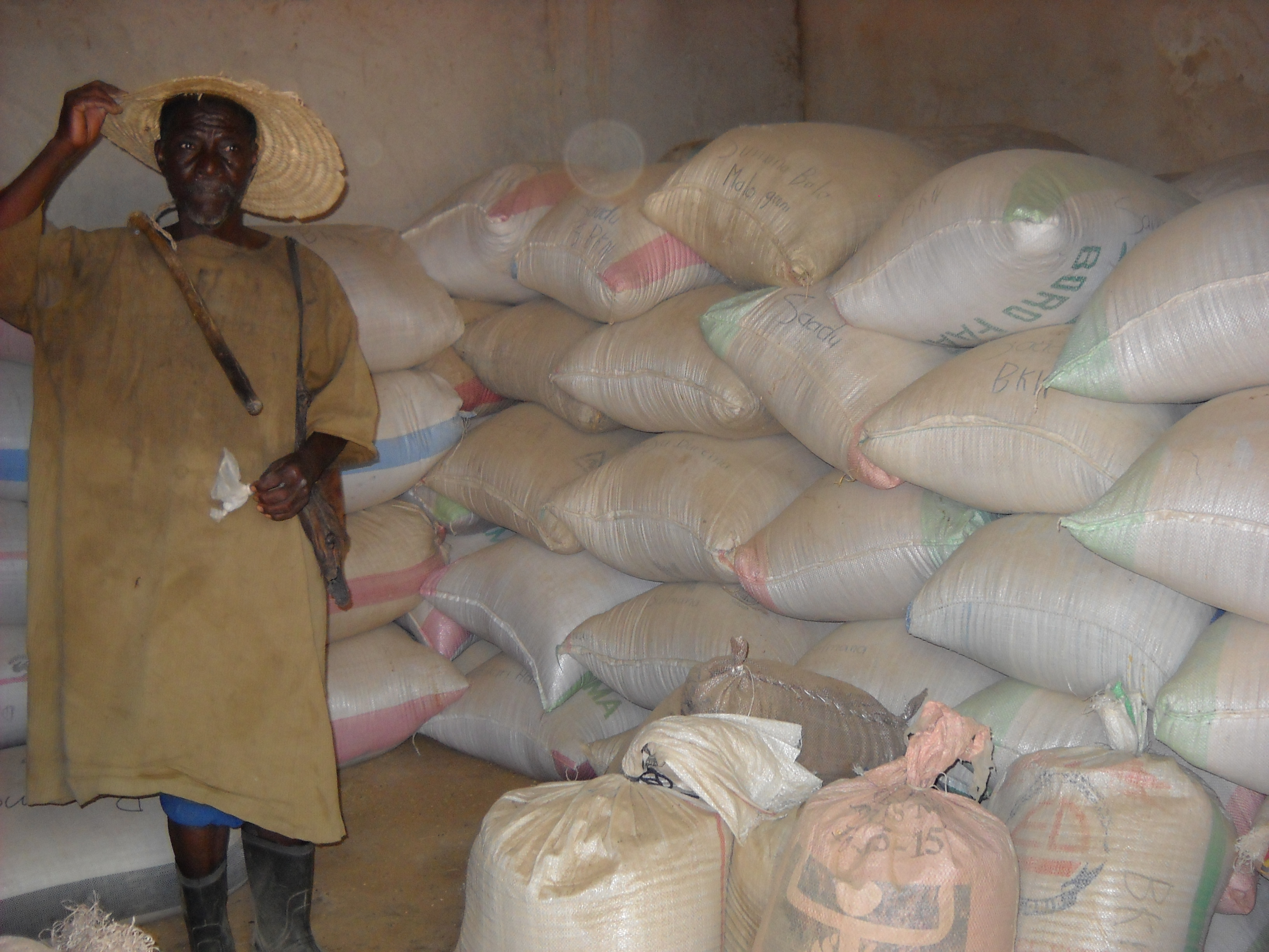 La banque de céréales est terminée. Au démarrage nous avons fourni 1 tonne de céréales, actuellement il y en a 2,6 tonnes. Les récoltes ont été très bonnes. Voyez!