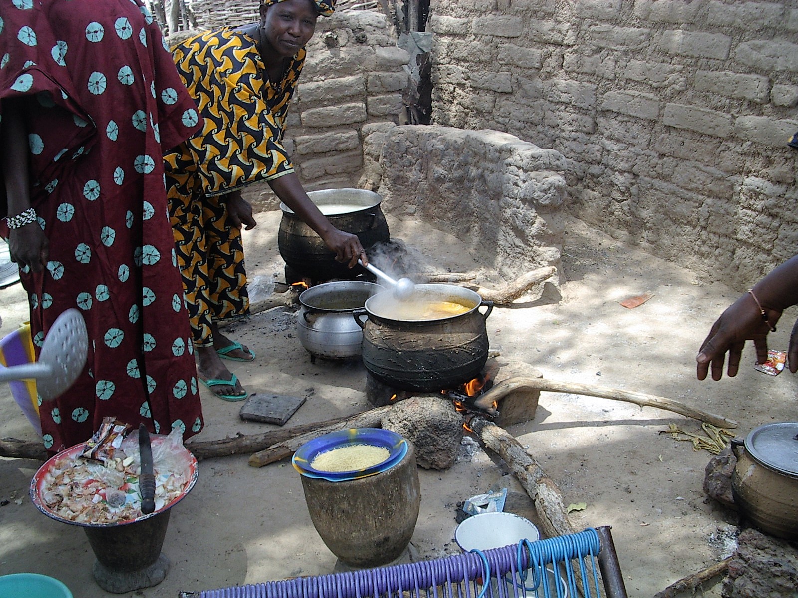 - Ici des femmes utilisent le pilon pour écraser le mil. Travail long et fatigant…