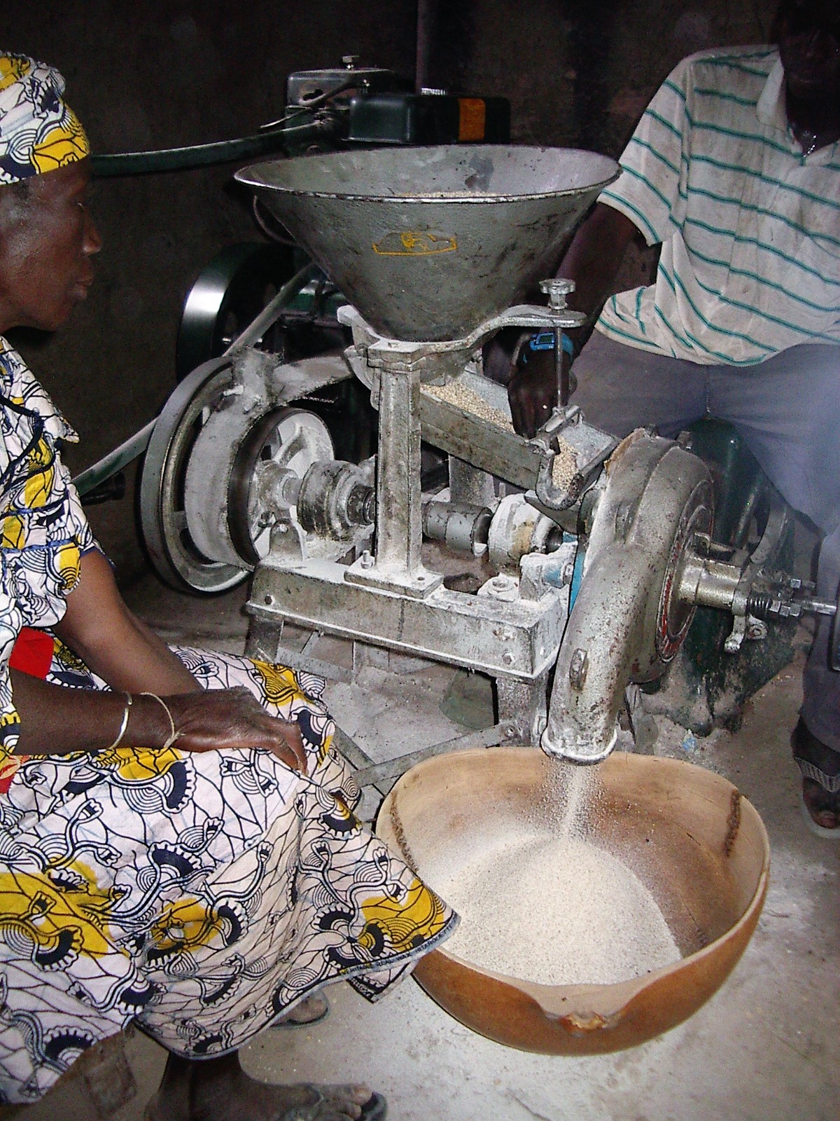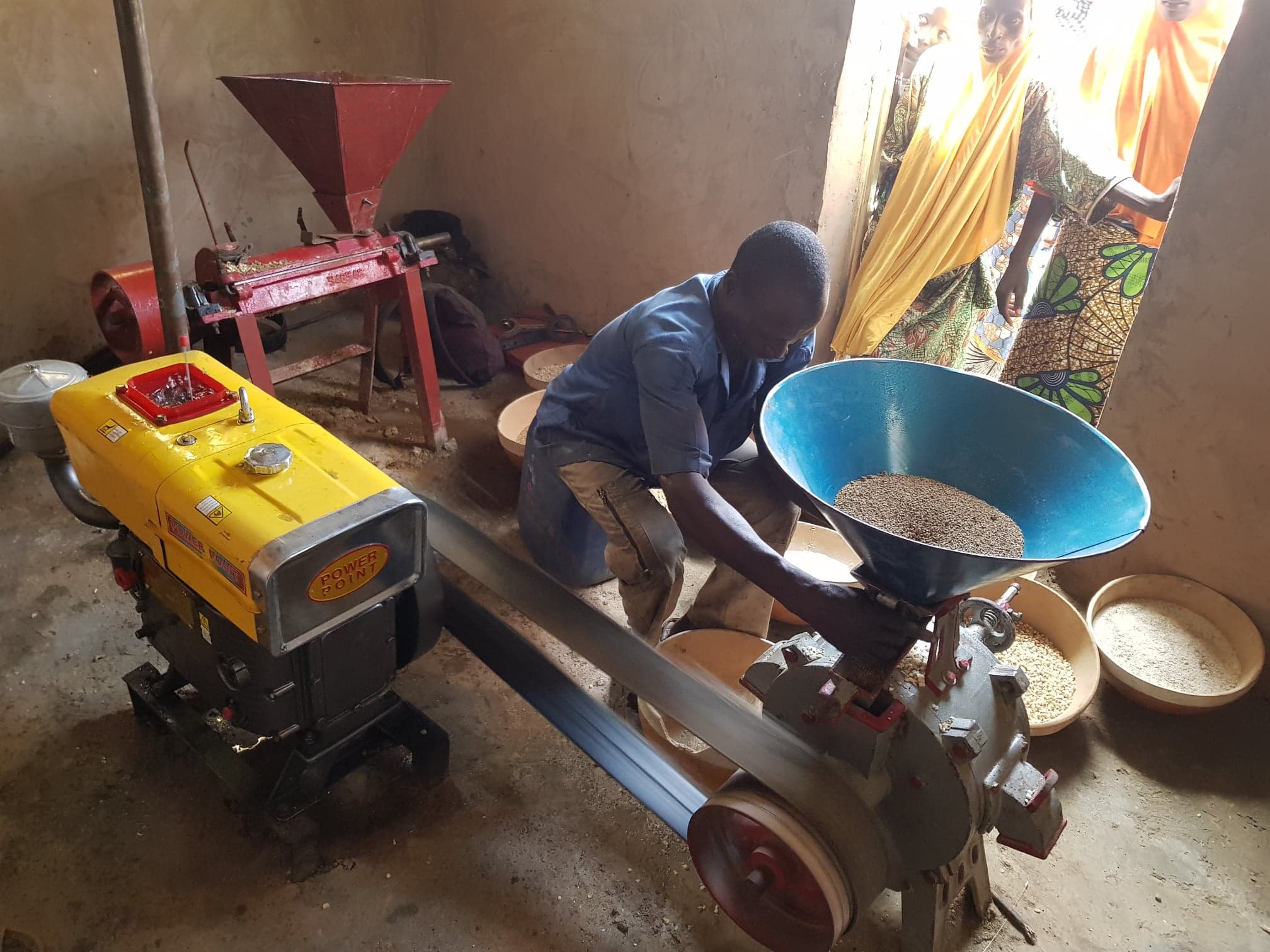 Un bâtiment en dur a été construit pour l’abriter . Nous demandons une participation financière aux femmes. Chaque femme doit donner 5 000 F CFA. 2 500 F CFA pour participer à la réalisation du projet de moulin et 2500 F CFA qui sont mis sur un compte épargne ouvert au nom du comité de gestion. Le projet ne démarre que lorsque le compte épargne est ouvert avec l’argent sur le compte et lorsque le permanent à la liste des femmes (minimum 40) et les 2 500 F CFA versés par chaque femme.