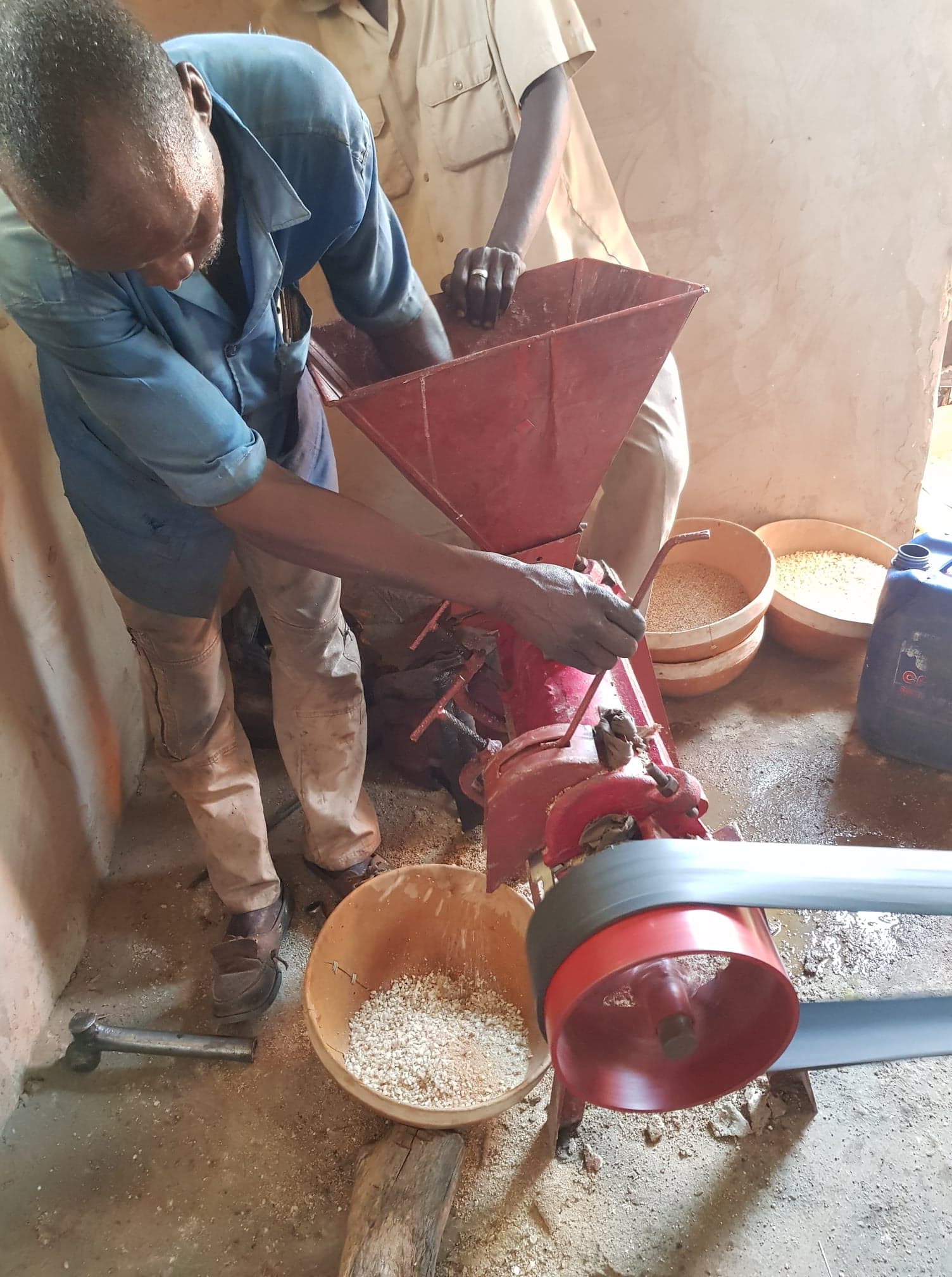 Octobre 2018, achat d’ un moulin et d’ une décortiqueuse pour les femmes.