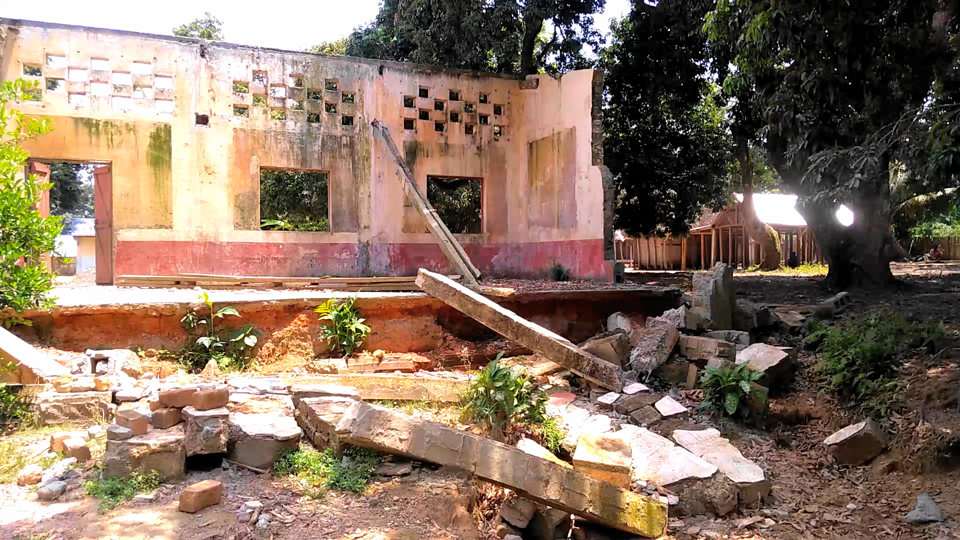 La construction de l’école est déjà bien avancée. C’est une école à 3 classes, en dur et anticyclonique.